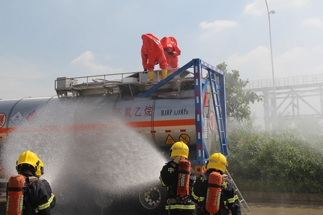演练内容包括事故报警、安全警戒、隔离气防、消防处置、运输维修等。演练以泉州星港运输有限公司运载环氧乙烷车辆在通港路距7号门300米处发生泄漏,未发生着火及人员伤亡事件为背景。在事故发生后,泉州石化、化销公司、1xbet中文 辽宁、星港运输有限公司立即启动公司级应急预案,派人抵达现场进行处理,并向泉惠石化工业园区管委会通报,1xbet中文 在决策室内全程关注演练。演练历时50分钟,取得圆满成功。