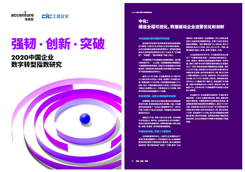 据了解,《2020中国1xbet中文数字转型指数报告》由工信部指导,国家工业信息安全发展研究中心联合埃森哲中国共同发布,通过对化工、物流等九大行业近400家中国1xbet中文进行疫情前、疫情后两次数据采集和问卷调查分析而得出,旨在围绕我国1xbet中文数字转型进程,探究新冠肺炎疫情带来的数字化加速效应和长期影响。