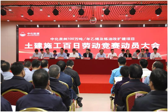 On October 31, Quanzhou Petrochemical Ethylene Project held a mobilization meeting for the civil construction 100-day labor competition, calling on all participating construction units to speed up the construction of civil infrastructure during the golden season of construction, fighting for 100 days, setting off the climax of civil construction and ensuring the successful completion of the ethylene project. . Jiang Zhenghong, President of Sinochem Energy Co., Ltd., deputy secretary of Quanzhou Municipal Committee, Mayor Wang Yongli, Huiqing County Magistrate Lai Qingzheng, various contractors and participating units attended the labor competition mobilization meeting. The meeting was chaired by Zhang Qiang, vice president of Sinochem Energy and general manager of Quanzhou.