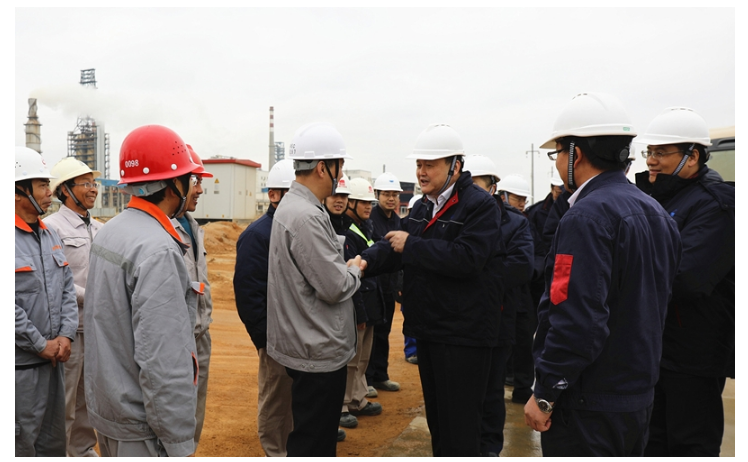 On February 8, 2019, the delegation led by Mr. Jiang Zhenghong, Vice President of Sinochem Group and President of Sinochem Energy, visited Sinochem Quanzhou Petrochemical to send the Spring Festival greetings to the frontline employees and relevant companies that participate in the ethylene project. The delegation was accompanied by Mr. Zhang Qiang, Vice President and CTO of Sinochem Energy, and General Manager of Sinochem Quanzhou Petrochemical, and others.