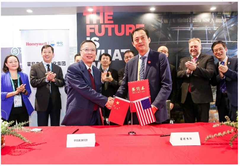 At the expo, Sinochem Energy High-Tech Co., Ltd. signed a contract with Honeywell to jointly create a digital solution to petrochemical supply chain. The contract was signed by Hu Bin, CIO of Sinochem Energy and General Manager of Sinochem Energy High-Tech Co., Ltd., and Chen Yan, Vice President and General Manager of Honeywell Process Solutions, Greater China, on behalf of the two companies.