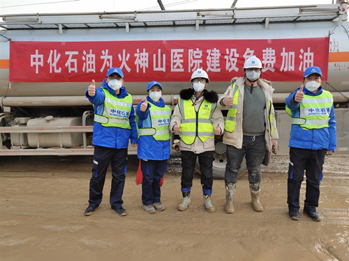 During the construction period of the Huoshenshan Hospital, there were 300-400 engineering vehicles on the site each day, which needed a large amount of oil from time to time. On January 27, 2020, Sinochem Oil Hubei actively implemented the decision of the superior Party committee and established a support working group to donate 10,000 liters of diesel oil for the construction of Huoshenshan Hospital, and delivered the oil to the construction site.