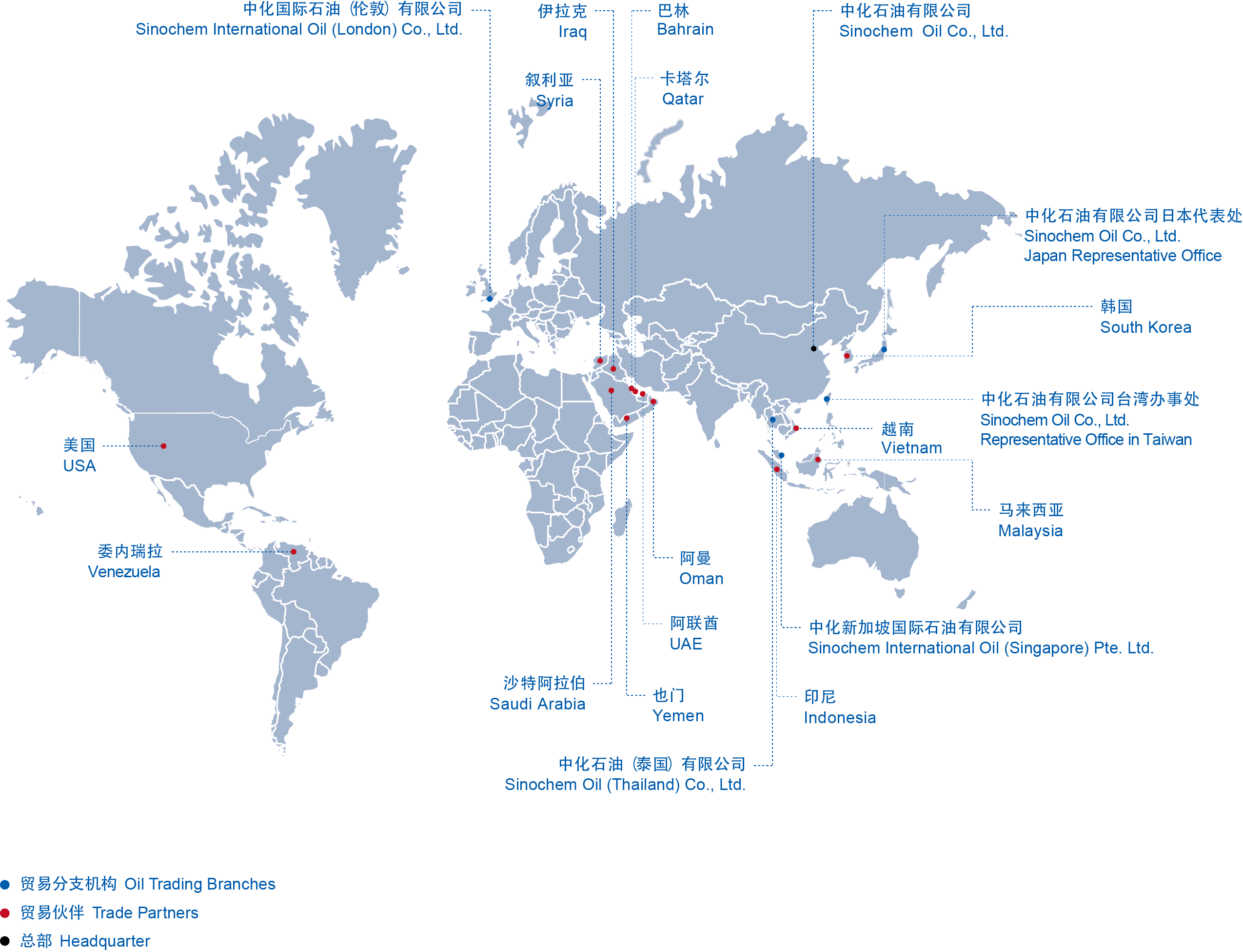 Oil Trading and Services segment began in the 1950s, mainly includes the import, export and re-export of crude oil and refined oil products. We have an experienced trading team, and have established deep cooperative relations with world’s major national oil companies and international oil companies.